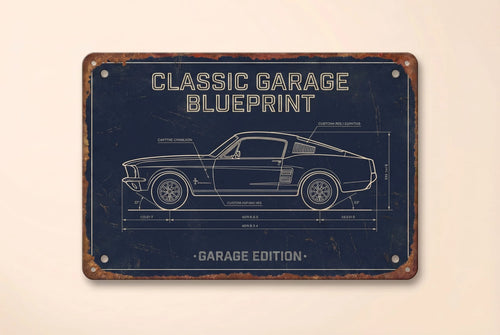 Classic Garage Blueprint Metal Sign Classic Garage Blueprint Metal Sign